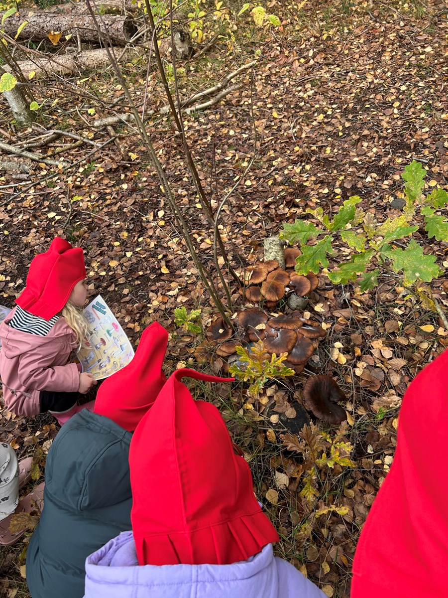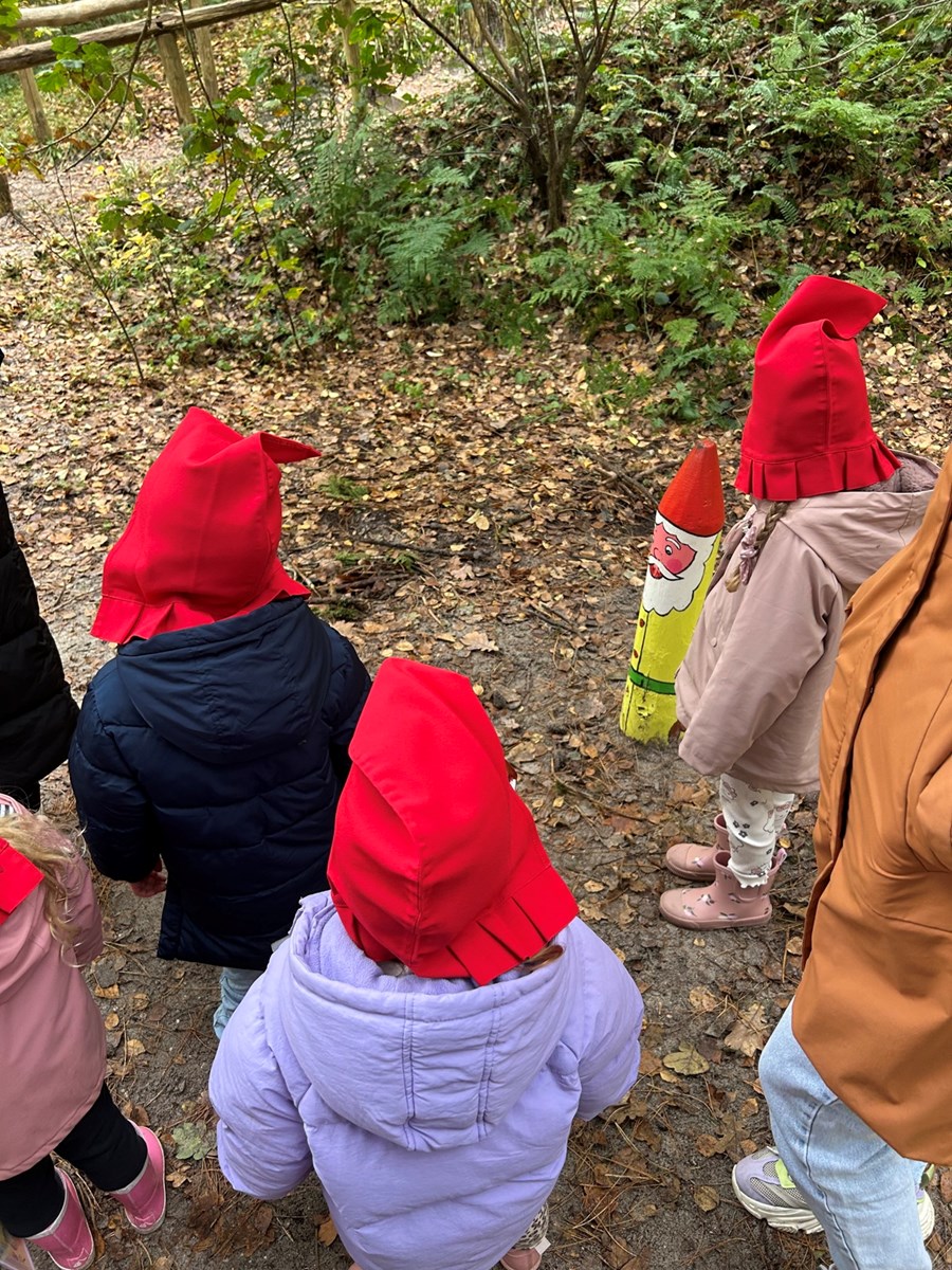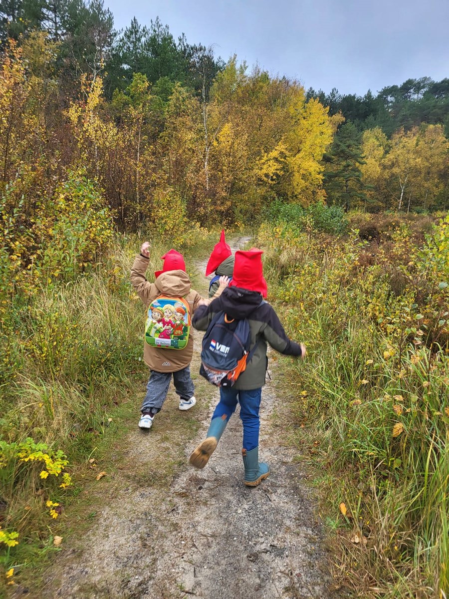 Onze jongste leerlingen vandaag op avontuur als kabouters.