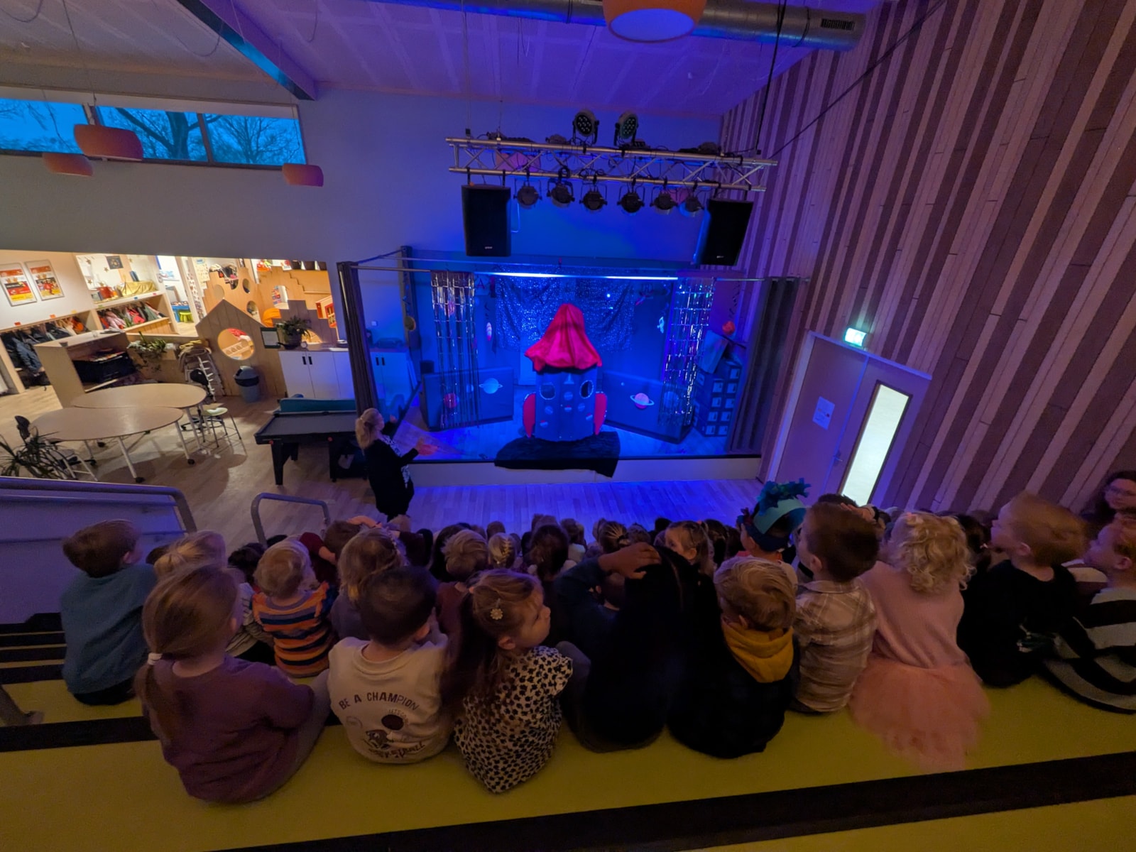 Afgelopen maandag zijn de kleuters aan een spectaculair nieuw avontuur begonnen: het thema Ruimte! De opening was een groot succes. De leerkrachten verrasten de kinderen met een kort toneelstukje, waarmee het startschot werd gegeven voor een leerzame reis langs de sterren en planeten.